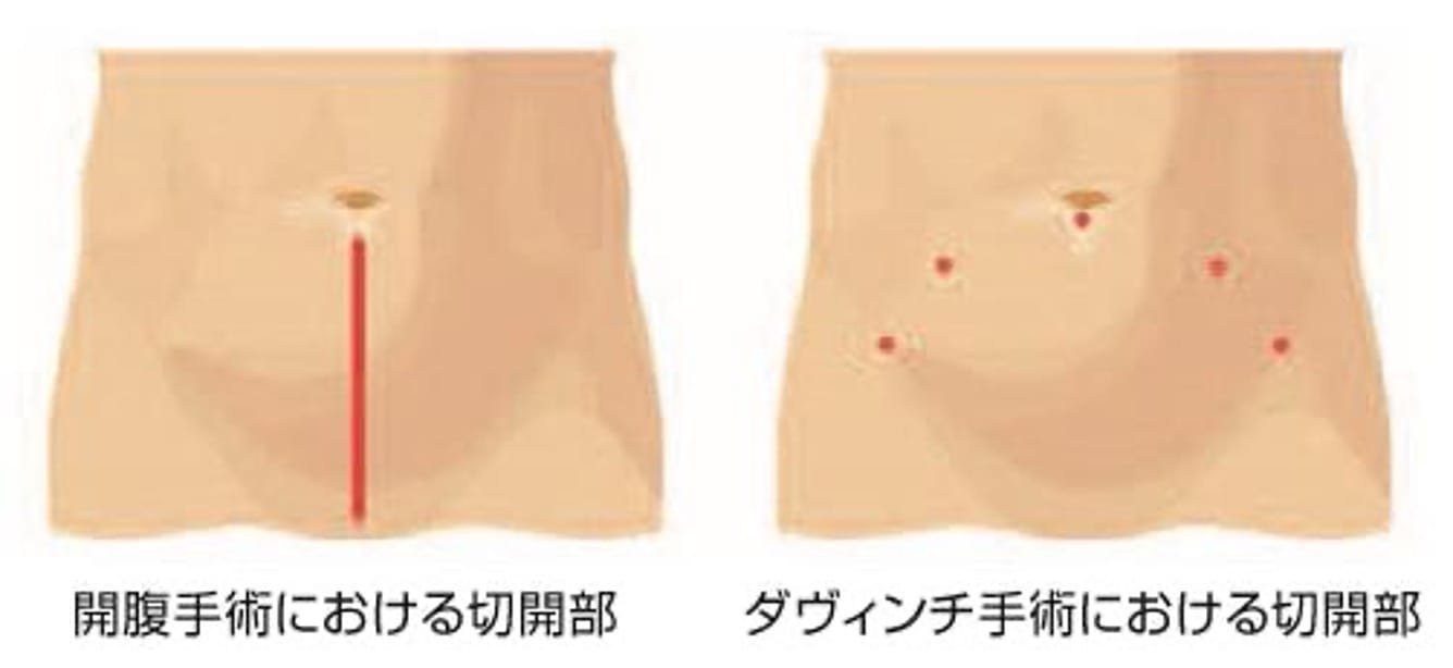 da Vinci(ダヴィンチ)での手術は、体に1〜2cmほどの穴を開けてロボットアームや内視鏡カメラを挿入するので、従来よりも小さな傷で手術が可能です。出血量が少なく、術後の痛みも少ないため、社会生活に早く復帰できます。
